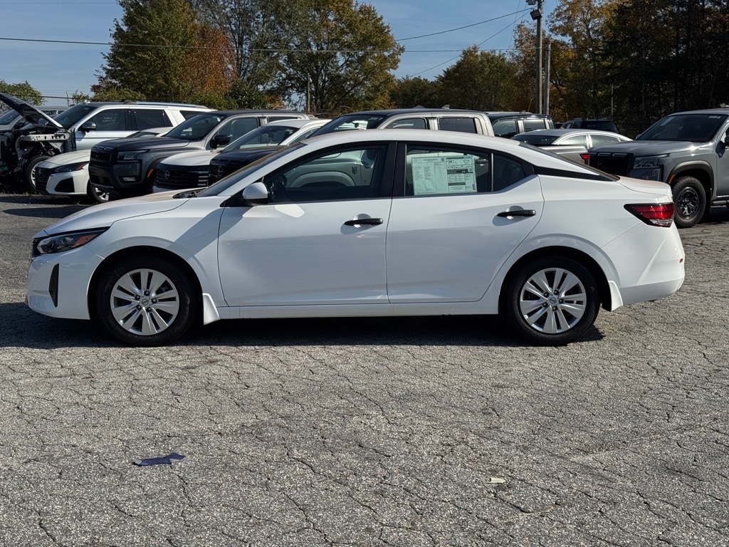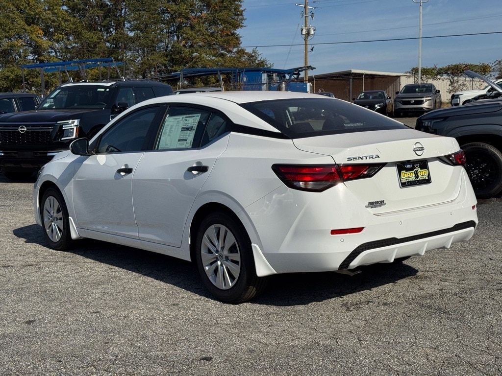 Check out this New 2025 Nissan Sentra S available at Benso Nissan of Easley in Easley, SC. Offered at just $20214, this Nissan Sentra wonât last long. This FWD Nissan Sentra S is powered by a 2.0L I4 DOHC an includes these features and benefits CVT with Xtronic, Charcoal Cloth, 4 Speakers, ABS brakes, Air Conditioning, AM/FM radio, Auto High-beam Headlights, Blind Spot Warning, Body Colored Splash Guards (4-Piece), Brake assist, Bumpers: body-color, Carpeted Floor Mats with Trunk Mat, Cloth Seat Trim, Delay-off headlights, Driver door bin, Driver vanity mirror, Dual front impact airbags, Dual front side impact airbags, Electronic Stability Control, Four wheel independent suspension, Front anti-roll bar, Front Bucket Seats, Front Center Armrest, Front reading lights, Fully automatic headlights, Illuminated entry, Knee airbag, Low tire pressure warning, NissanConnect featuring Apple CarPlay and Android Auto, Occupant sensing airbag, Outside temperature display, Overhead airbag, Overhead console, Panic alarm, Passenger door bin, Passenger vanity mirror, Power door mirrors, Power steering, Power windows, Radio data system, Radio: AM/FM with RDS/MP3/Aux-in, Rear anti-roll bar, Rear Parking Sensors, Rear side impact airbag, Rear window defroster, Remote keyless entry, Speed control, Speed-sensing steering, Split folding rear seat, Steering wheel mounted audio controls, Tachometer, Telescoping steering wheel, Tilt steering wheel, Traction control, Trip computer, Variably intermittent wipers, and Wheels: 16" Steel with Full Covers.
