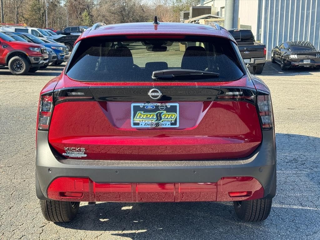 Check out this New 2026 Nissan Kicks SV available at Benso Nissan of Easley in Easley, SC. Offered at just $27013, this Nissan Kicks wonât last long. This FWD Nissan Kicks SV is powered by a 2.0L DOHC an includes these features and benefits Cold Weather Package (Heated Front Seats, Heated Mirrors, and Rear Floor Heater Ducts), Interior Electronics Package (Door Pocket Light and Interior Ambient Lighting), SV Premium Package (Illuminated Driver and Passenger Sun Visors, Panoramic Moonroof, and Sunglass Holder), 4 Speakers, 4-Wheel Disc Brakes, ABS brakes, Air Conditioning, AM/FM radio, Auto High-beam Headlights, Automatic temperature control, Blind Spot Warning, Brake assist, Bumpers: body-color, Cloth Seat Trim, Driver door bin, Driver vanity mirror, Dual front impact airbags, Dual front side impact airbags, Electronic Stability Control, Emergency communication system, Exterior Parking Camera Rear, Front anti-roll bar, Front Bucket Seats, Front Center Armrest, Front reading lights, Front wheel independent suspension, Fully automatic headlights, Illuminated entry, Knee airbag, Low tire pressure warning, NissanConnect featuring Apple CarPlay and Android Auto, Occupant sensing airbag, Outside temperature display, Overhead airbag, Panic alarm, Panoramic Headliner Illumination, Passenger door bin, Passenger vanity mirror, Power door mirrors, Power steering, Power windows, Premium Paint, Radio data system, Radio: AM/FM/SiriusXM Audio System, Rear anti-roll bar, Rear reading lights, Rear side impact airbag, Rear window defroster, Rear window wiper, Remote keyless entry, Security system, Speed control, Speed-sensing steering, Splash Guards, Split folding rear seat, Spoiler, Sport steering wheel, Steering wheel mounted audio controls, Tachometer, Telescoping steering wheel, Tilt steering wheel, Traction control, Trip computer, Variably intermittent wipers, and Wheels: 17" Steel Flex with Full Covers.