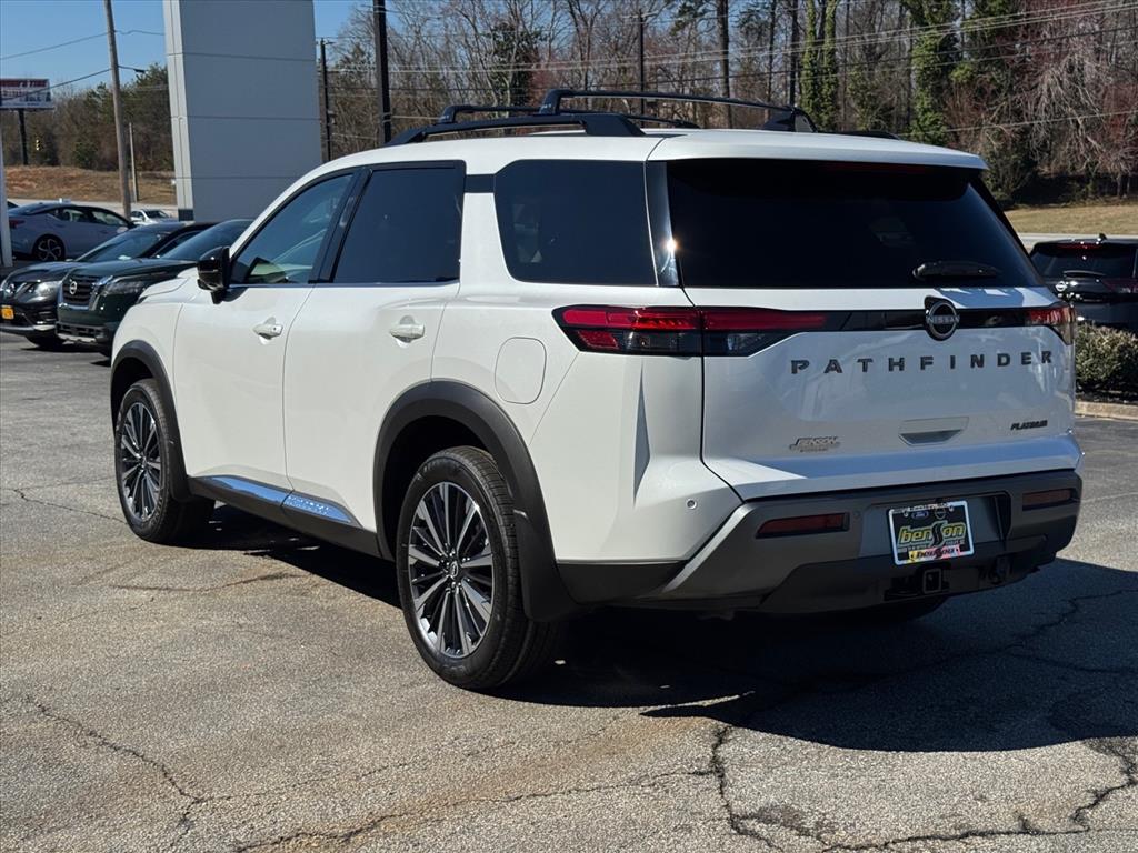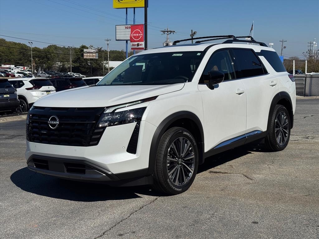 Check out this New 2026 Nissan Pathfinder Platinum available at Benso Nissan of Easley in Easley, SC. Offered at just $47268, this Nissan Pathfinder wonât last long. This FWD Nissan Pathfinder Platinum is powered by a 3.5L V6 DOHC an includes these features and benefits 13 Speakers, 3rd row seats: bench, 4-Wheel Disc Brakes, ABS brakes, Air Conditioning, Alloy wheels, AM/FM radio: SiriusXM w/360L, Auto High-beam Headlights, Auto tilt-away steering wheel, Auto-dimming Rear-View mirror, Automatic temperature control, Bodyside moldings, Bose Premium Audio System, Brake assist, Bumpers: body-color, Climate Controlled Front Bucket Seats, Delay-off headlights, Driver door bin, Driver vanity mirror, Dual front impact airbags, Dual front side impact airbags, Electronic Stability Control, Emergency communication system: NissanConnect Services, Four wheel independent suspension, Front anti-roll bar, Front Bucket Seats, Front Center Armrest, Front dual zone A/C, Front reading lights, Fully automatic headlights, Garage door transmitter: HomeLink, Heads-Up Display, Heated door mirrors, Heated front seats, Heated rear seats, Heated steering wheel, Illuminated entry, Knee airbag, Low tire pressure warning, Memory seat, NissanConnect featuring Apple CarPlay and Android Auto, Occupant sensing airbag, Outside temperature display, Overhead airbag, Overhead console, Panic alarm, Passenger door bin, Passenger vanity mirror, Power door mirrors, Power driver seat, Power Liftgate, Power moonroof, Power passenger seat, Power steering, Power windows, Premium Paint, Radio data system, Radio: AM/FM Audio System with NissanConnect, Rain sensing wipers, Rear air conditioning, Rear anti-roll bar, Rear reading lights, Rear seat center armrest, Rear side impact airbag, Rear window defroster, Rear window wiper, Reclining 3rd row seat, Remote keyless entry, Security system, Semi-Aniline Leather-Appointed Seating Surfaces, Speed control, Speed-sensing steering, Speed-Sensitive Wipers, Split folding rear seat, Spoiler, Steering wheel memory, Steering wheel mounted audio controls, Tachometer, Telescoping steering wheel, Tilt steering wheel, Traction control, Trip computer, Turn signal indicator mirrors, Variably intermittent wipers, Ventilated front seats, and Wheels: 20" Machined Alloy.