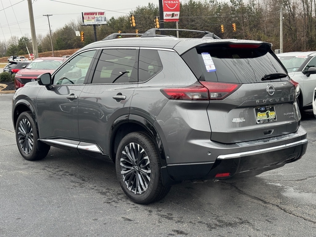 Check out this New 2026 Nissan Rogue Platinum available at Benso Nissan of Easley in Easley, SC. Offered at just $37958, this Nissan Rogue wonât last long. This AWD Nissan Rogue Platinum is powered by a 1.5L DOHC an includes these features and benefits Platinum Premium Package (Head-Up Display, Heated Rear Seats, Motion-Activated Power Liftgate, and Tri-Zone Automatic Temperature Control), AWD, 10 Speakers, 4-Wheel Disc Brakes, ABS brakes, Air Conditioning, Alloy wheels, AM/FM radio: SiriusXM w/360L, Auto High-beam Headlights, Auto-dimming Rear-View mirror, Automatic temperature control, Black Splash Guards (set of 4), Bose Premium Audio System, Brake assist, Bumpers: body-color, Chrome Rear Bumper Protector, Delay-off headlights, Driver door bin, Driver vanity mirror, Dual front impact airbags, Dual front side impact airbags, Electronic Stability Control, Emergency communication system: NissanConnect Services, First Aid Kit, Floor Mats with 2-Piece Cargo Area Protector, Four wheel independent suspension, Front anti-roll bar, Front Bucket Seats, Front Center Armrest, Front dual zone A/C, Front reading lights, Fully automatic headlights, Garage door transmitter: myQ Connected Garage, Heads-Up Display, Heated door mirrors, Heated Front Bucket Seats, Heated front seats, Heated steering wheel, Illuminated entry, Knee airbag, Low tire pressure warning, Memory seat, Navigation system: Google Maps, Occupant sensing airbag, Outside temperature display, Overhead airbag, Overhead console, Panic alarm, Passenger door bin, Passenger vanity mirror, Power door mirrors, Power driver seat, Power Liftgate, Power moonroof, Power passenger seat, Power steering, Power windows, Quilted Semi-Aniline Leather-Appointed Seat Trim, Radio data system, Radio: AM/FM NissanConnect with Navigation, Rear anti-roll bar, Rear reading lights, Rear seat center armrest, Rear side impact airbag, Rear window defroster, Rear window wiper, Remote keyless entry, Roof Rail Cross Bars, Security system, Speed control, Speed-sensing steering, Speed-Sensitive Wipers, Split folding rear seat, Spoiler, Steering wheel mounted audio controls, Tachometer, Telescoping steering wheel, Tilt steering wheel, Traction control, Trip computer, Turn signal indicator mirrors, Variably intermittent wipers, Wheels: 19" Unique Dark Painted Aluminum Alloy, and Wireless Apple CarPlay/Wireless Android Auto.